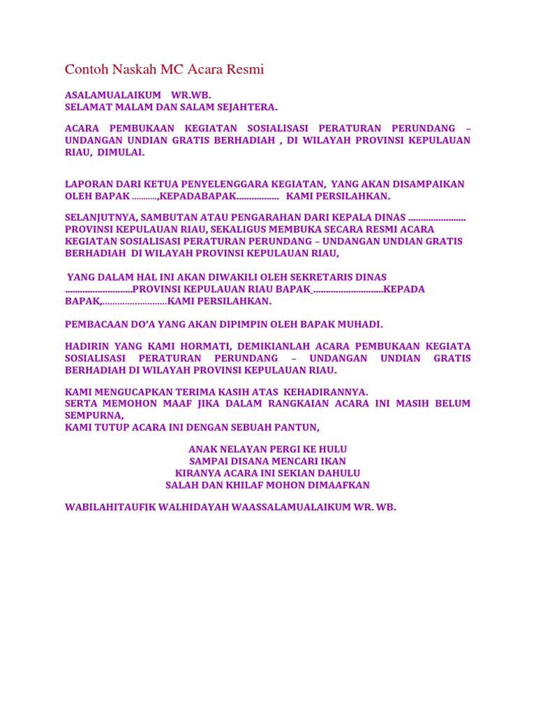 Contoh Naskah Pembukaan Oleh Pembawa Acara Mc Komunikasi