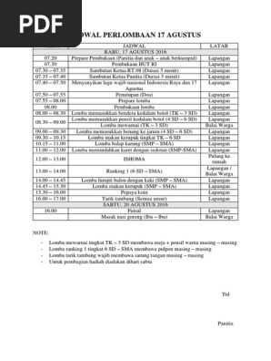 Contoh Susunan Acara Peringatan Hut Ri 17 Agustusan